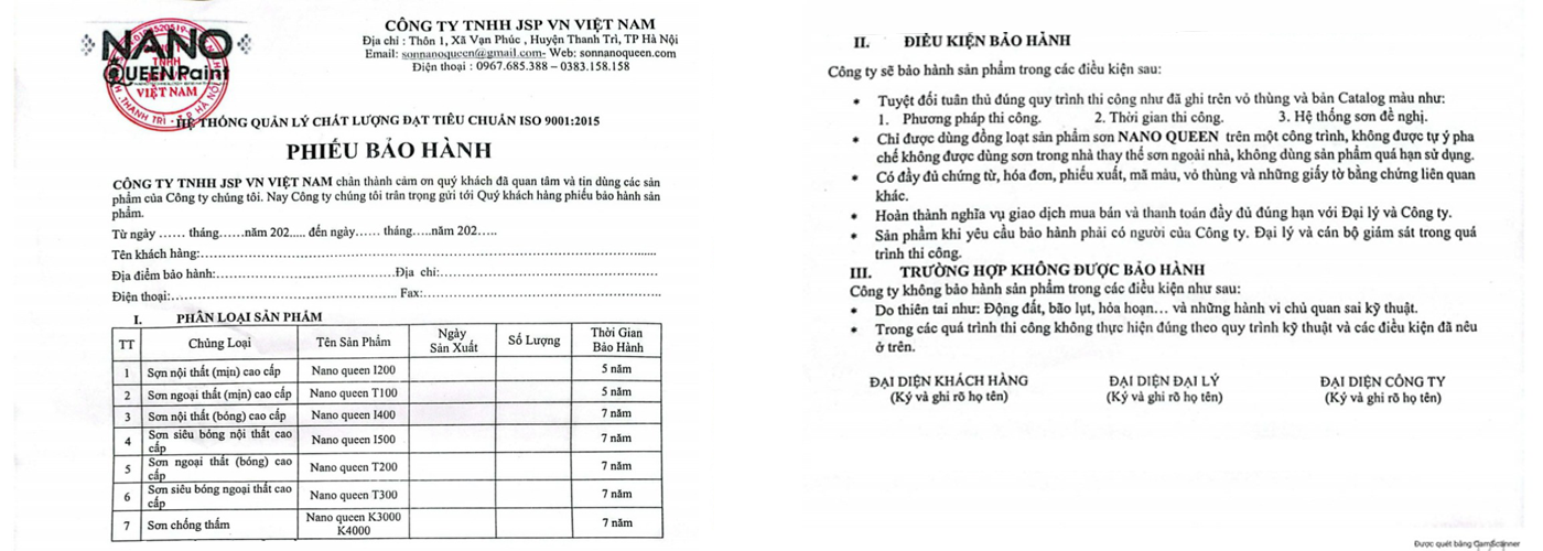 Công ty TNHH JSP VN Việt Nam là một trong những doanh nghiệp sản xuất và kinh doanh sơn uy tín tại Việt Nam với quy mô nhà máy lớn, lực lượng lao động dồi dào có năng lực chuyên môn cao, dây chuyền sản xuất được trang bị máy móc công nghệ hiện đại. Sau 10 năm hoạt động, công ty đã không ngừng khẳng định vị thế thương hiệu trên thị trường và niềm tin đối với khách hàng. Giai đoạn này, Công ty TNHH JSP VN Việt Nam cho ra mắt thương hiệu sơn NANOQUEEN để thỏa mãn và đáp ứng nhu cầu ngày càng nâng cao hơn nữa của Quý khách hàng. Vì vậy, Chúng tôi xin tự hào giới thiệu đến Quý Đại lý những lợi điểm khi kinh doanh thương hiệu sơn NANOQUEEN